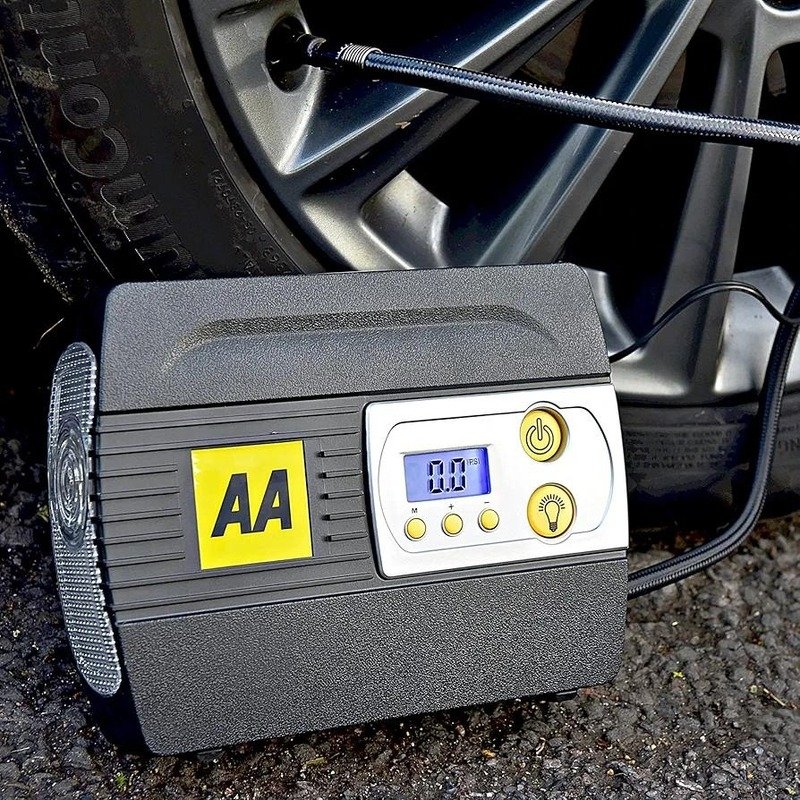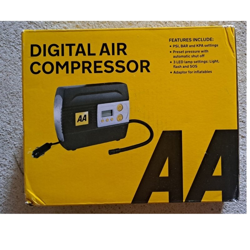 „AA Digital Air Compressor” yra daugiafunkcis įrenginys, skirtas pripūsti transporto priemonės padangas iki maksimalaus 100PSI slėgio, kurio galia yra 12 V.